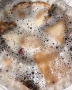 ⑥ぶくぶくと発酵してきたら、ザルなどで、パイナップルの皮や芯、スパイスを取り除き、瓶などに入れ冷蔵庫保存してください。