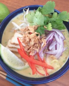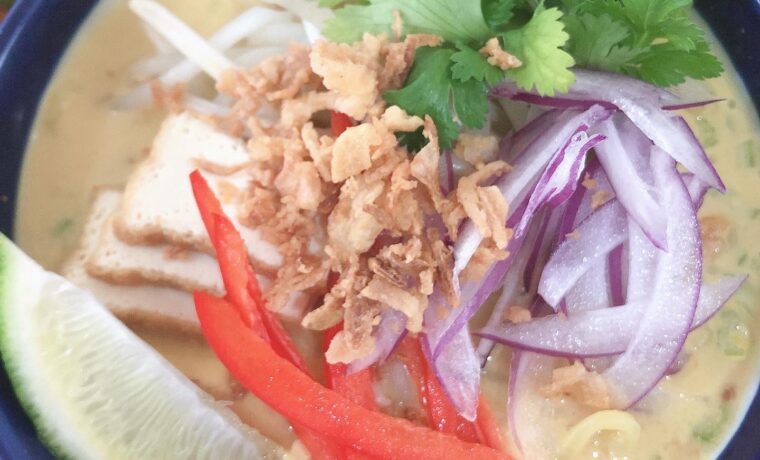 マレーシアやシンガポールで食べられている、エビ出汁ベースのカレー味のクリーミーな濃厚ヌードルです。