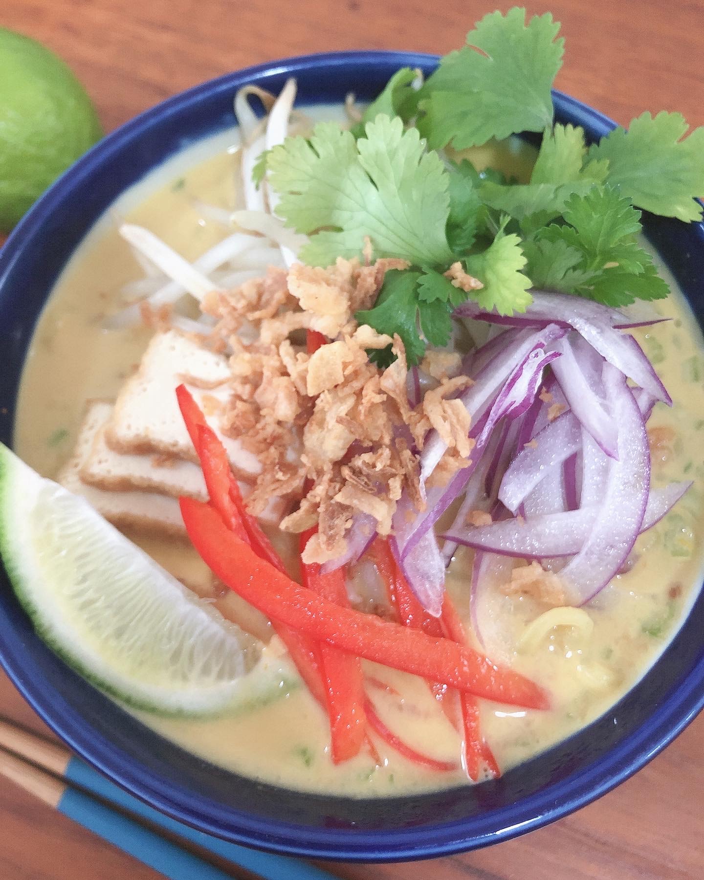 マレーシアやシンガポールで食べられている、エビ出汁ベースのカレー味のクリーミーな濃厚ヌードルです。